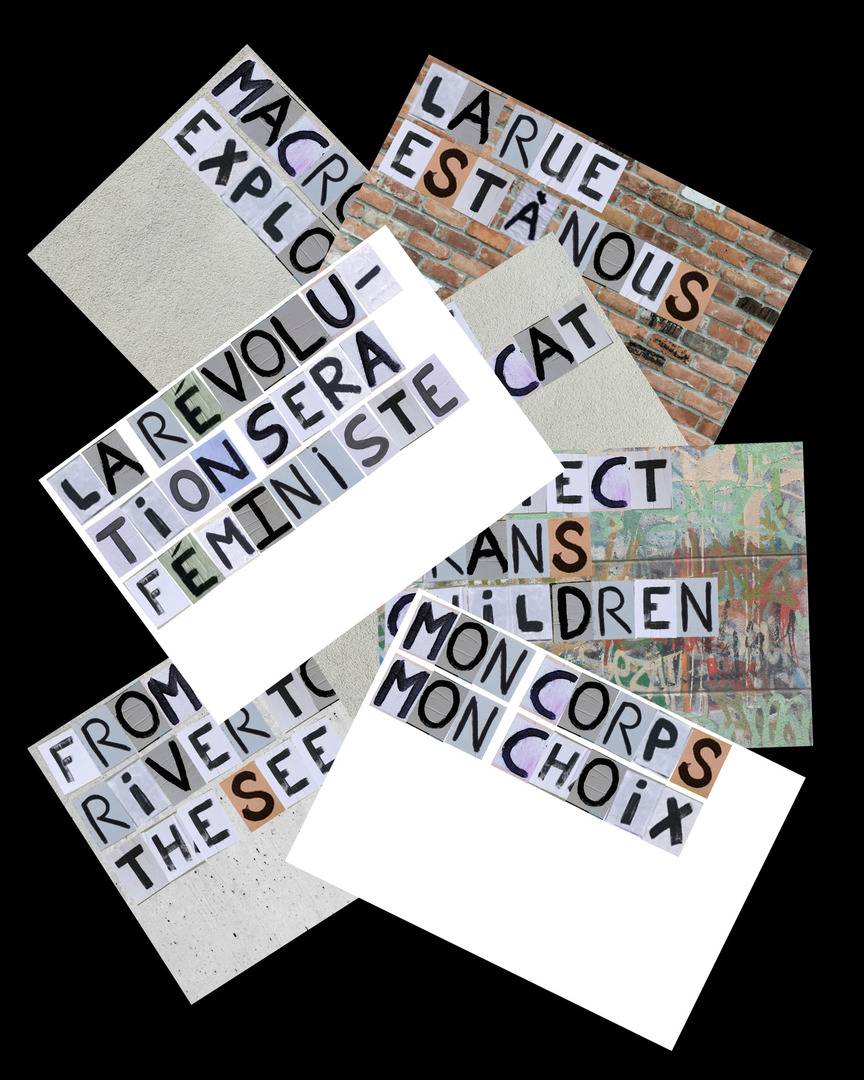 Outil de composition de collages numériques réalisés dans le cadre du workshop de Thibault Brunet sur la « post-photographie » à l'École Supérieure d'Art et de Communication de Cambrai. J’ai créé une bibliothèque de lettres en glanant des images de collages féministes sur le web. Je les ai ensuite intégrées à mon outil de sorte à ce qu’elles puissent être mélangées, recomposées selon la revendication de l’utilisateur.